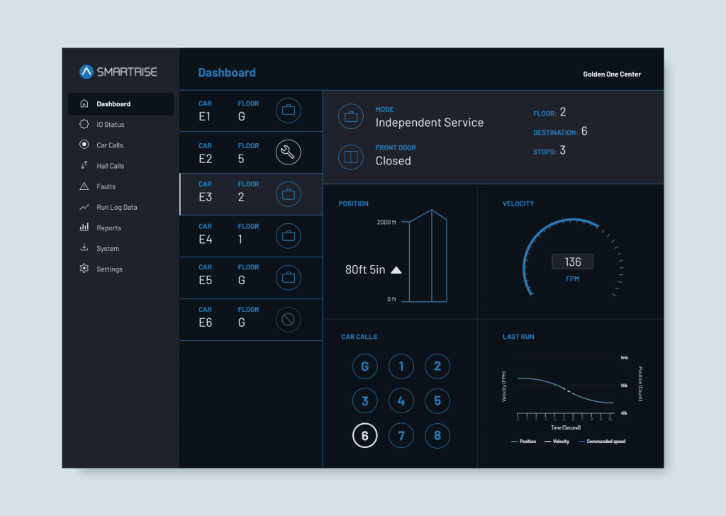 The Smartrise C4 platform allows elevator technicians and building owners to monitor and manage elevator systems through a centralized interface. The platform connects directly to elevator controllers, providing visibility into system performance, operational activity, and maintenance data.
