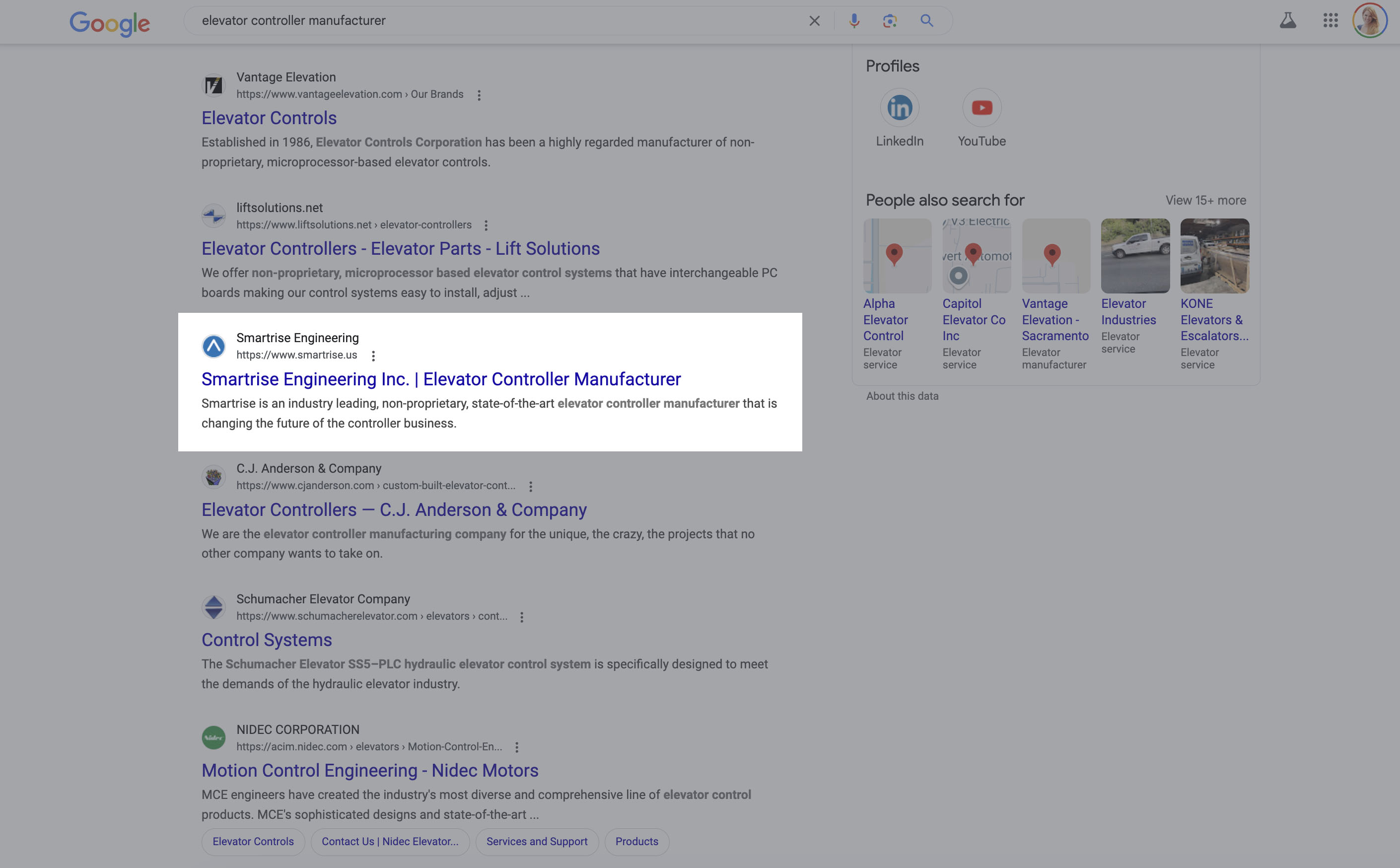 SEO Improvements: I followed Google SEO best practices to move Smartrise from 3rd page Google results for ‘Elevator controller manufacturer’ to 1st page results