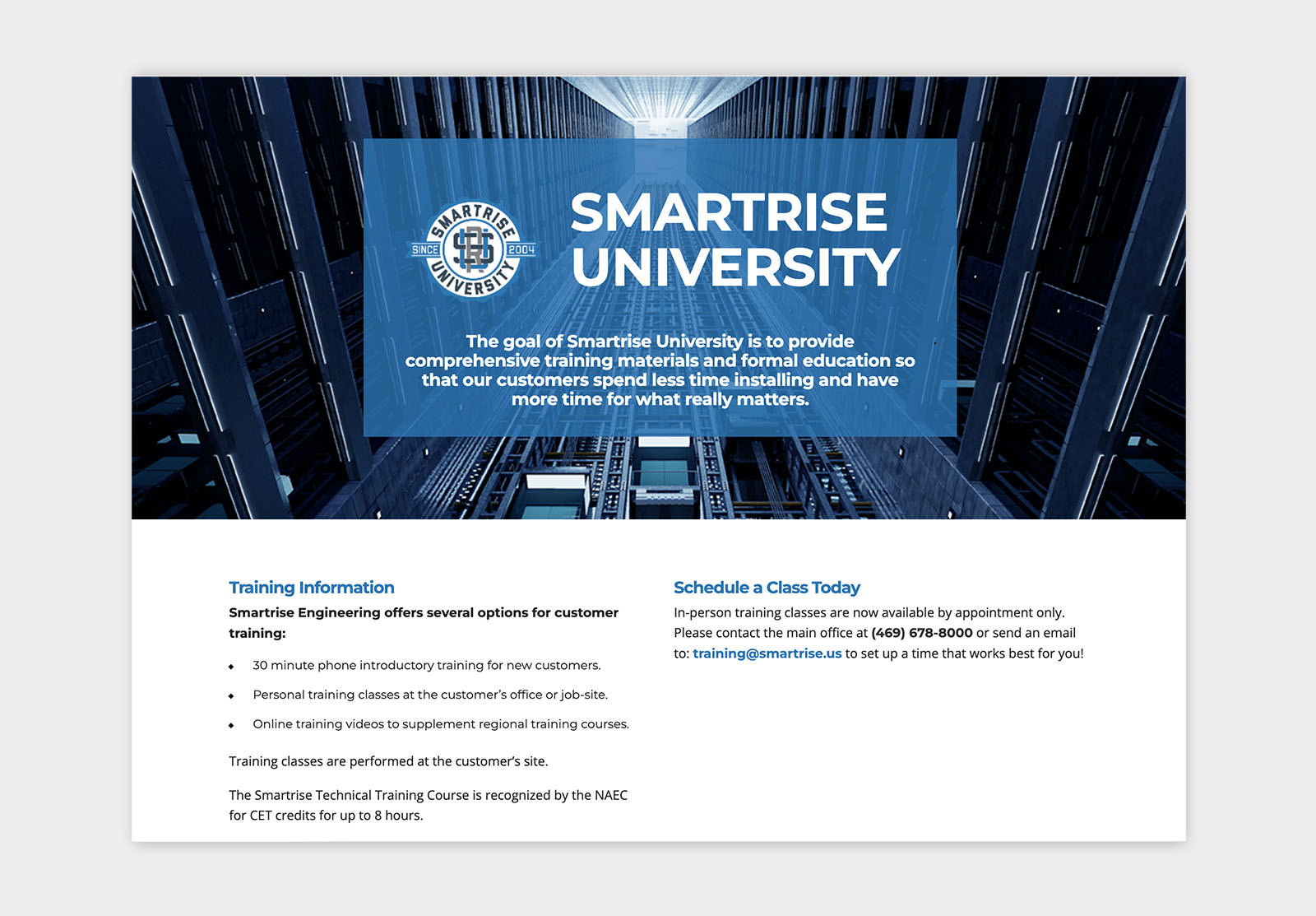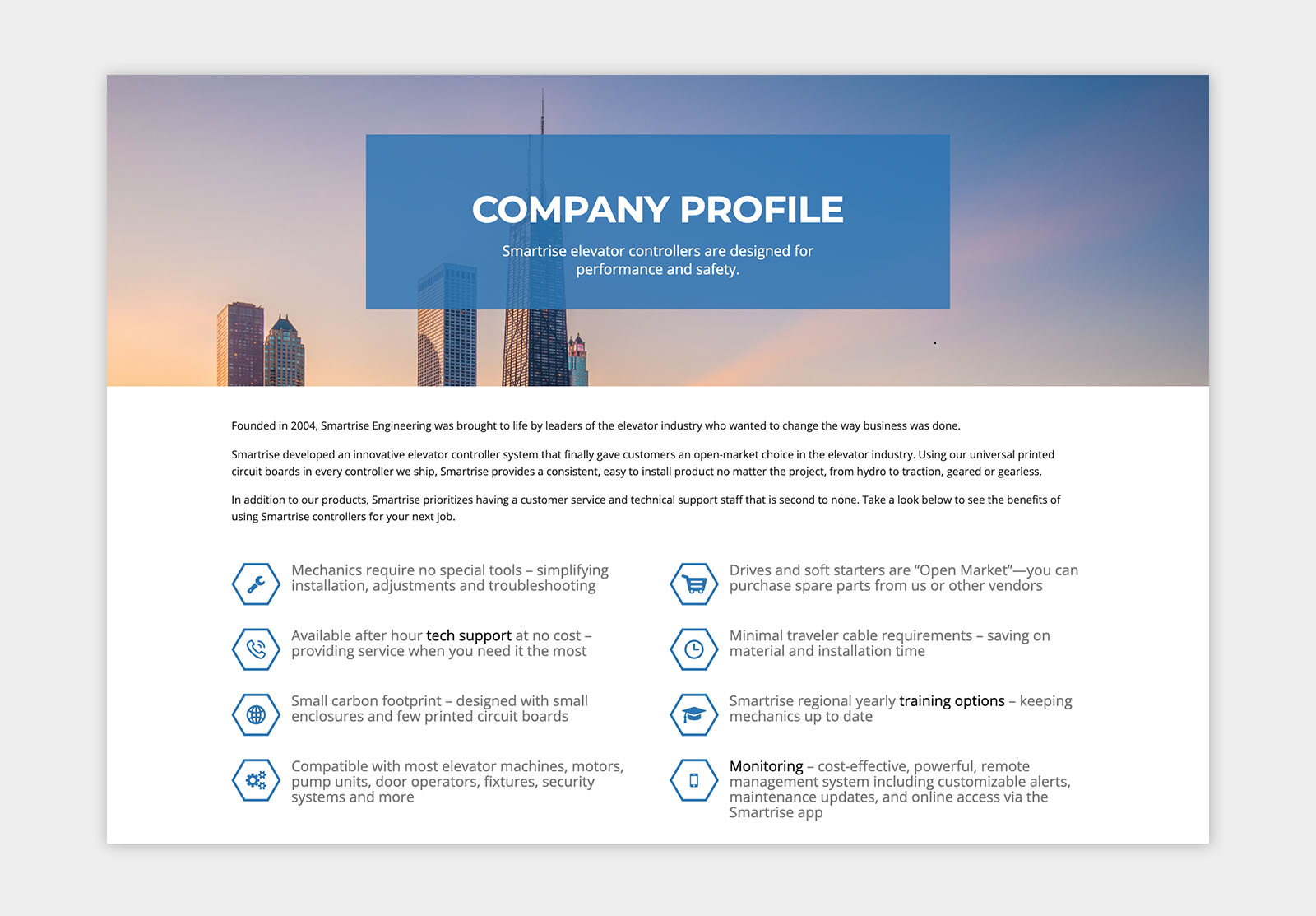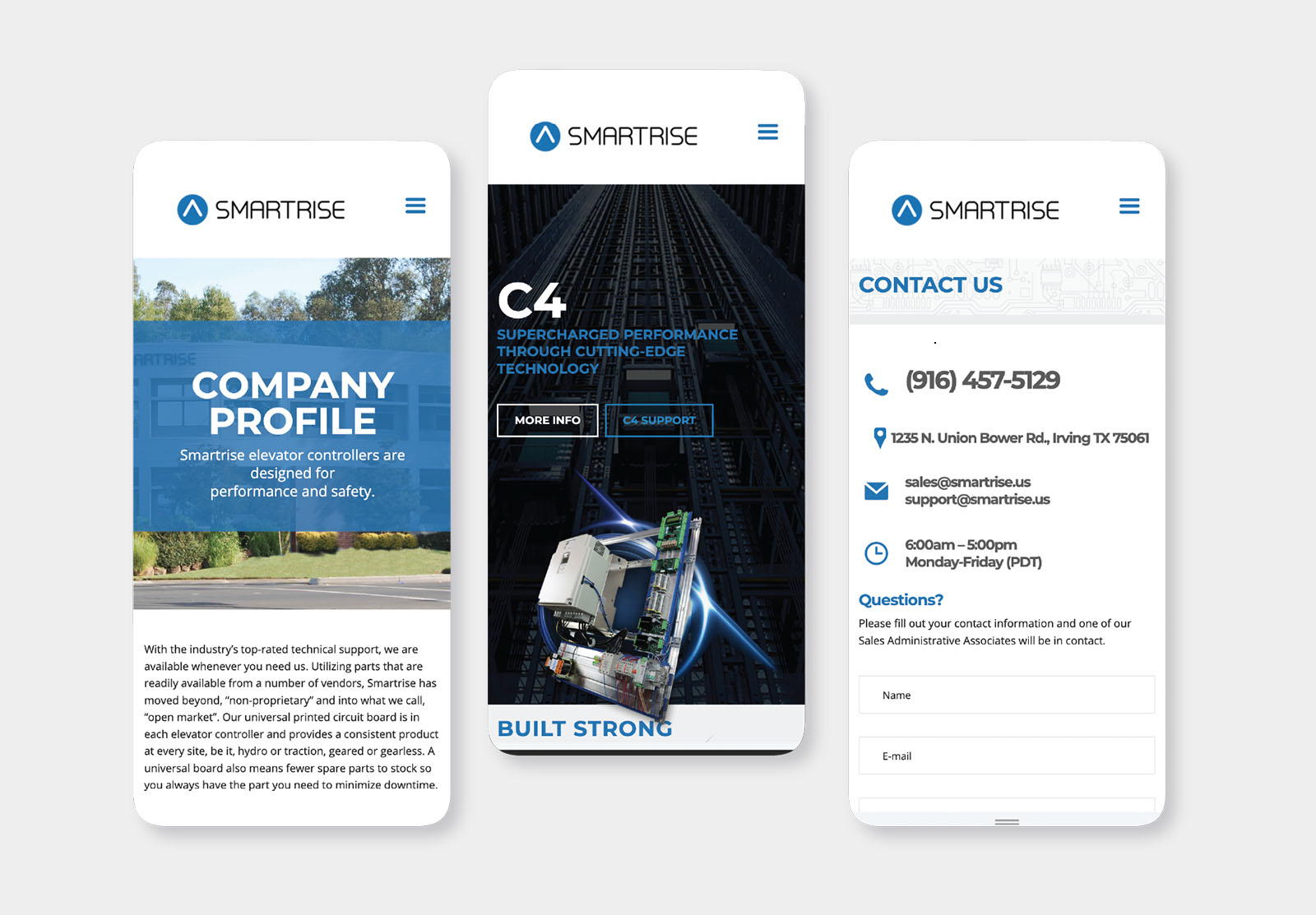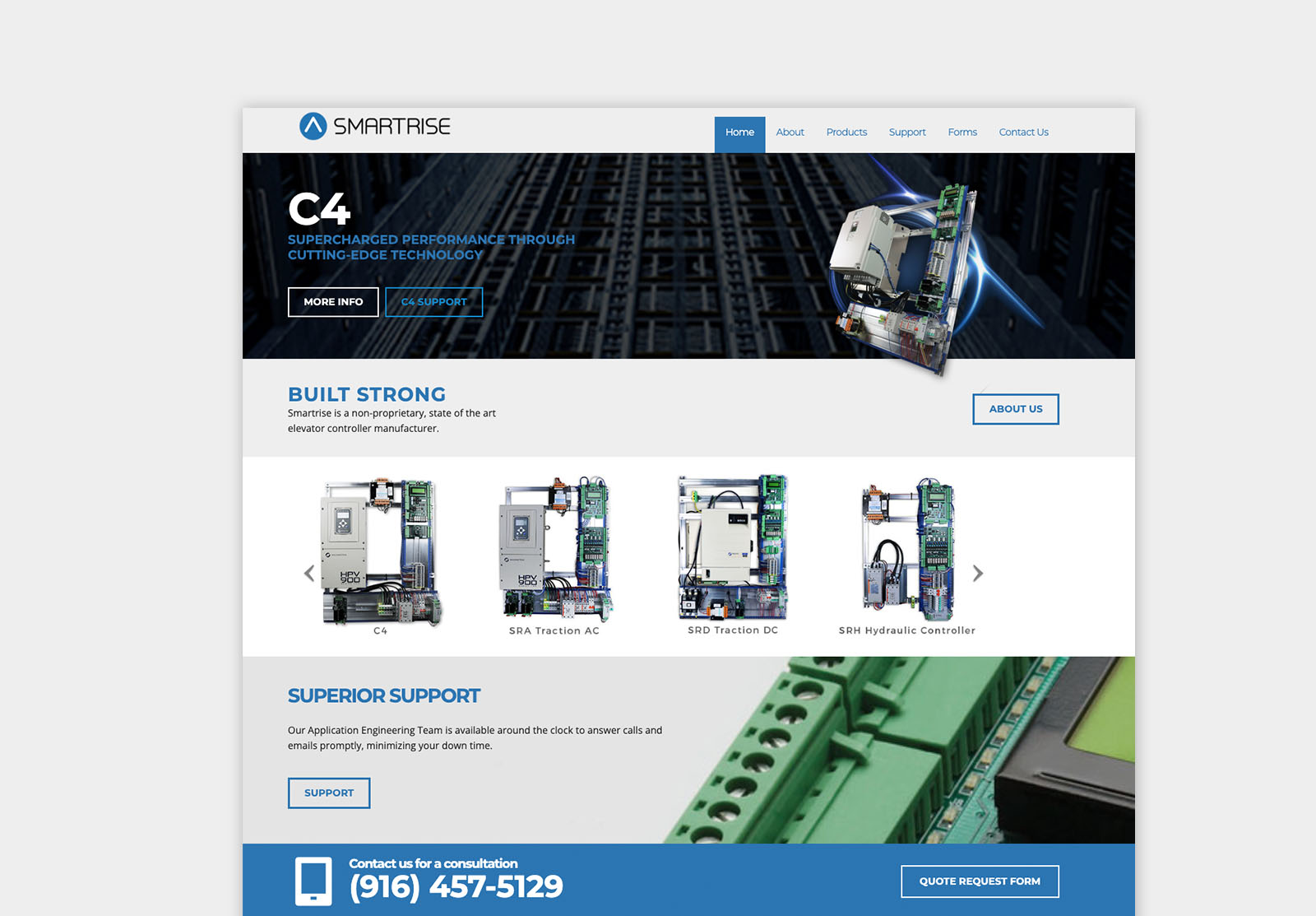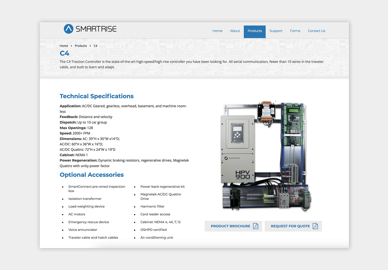 Project Overview: Redesigned the website for Smartrise, to enhance the user experience for businesses seeking to request quotes, view elevator controllers, or access product support.